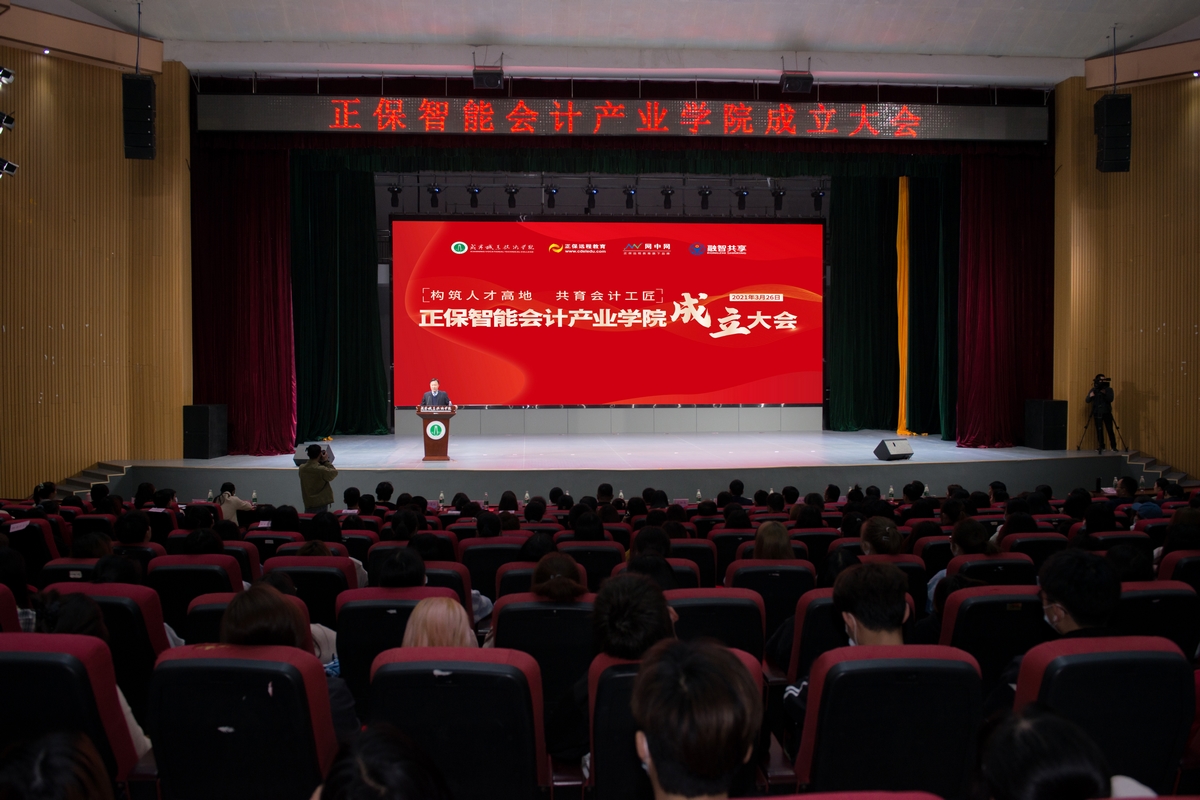 3月26日,正保智能会计产业学院成立大会在咸宁职院科学会堂隆重举行。出席成立大会的有校党委书记王继成、校长高焕清、副校长方旭、正保网中网软件有限公司总裁蔡理强、华中区总经理杨凤坤、正誉企业管理集团副总裁熊浩、广州融智共创科技有限公司总经理罗颖等嘉宾及会计学院全体师生。大会由会计学院陈婉博士主持。