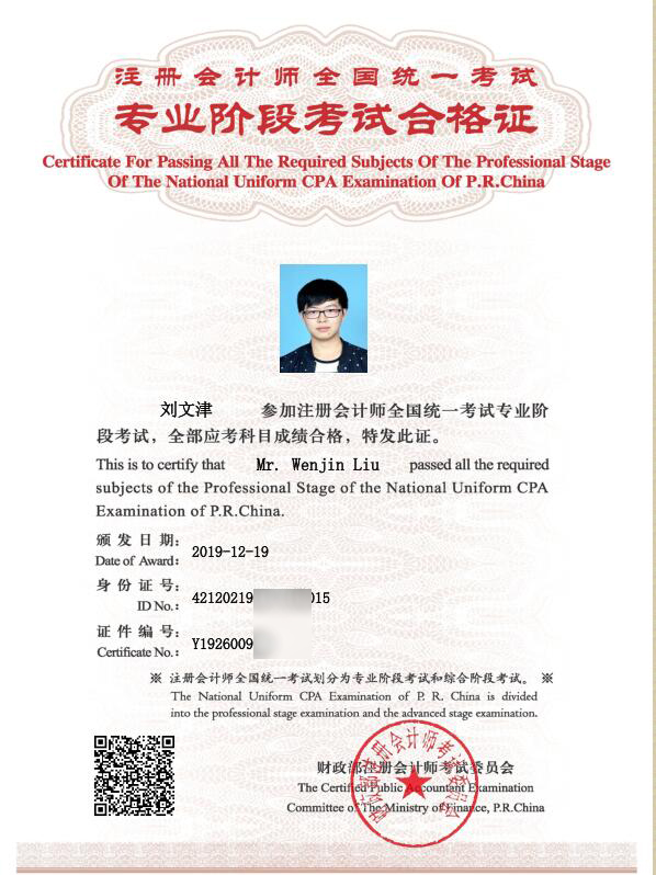 日前,注册会计师全国统一考试成绩公布,会计学院财管专业刘文津同学,经过3年的努力,全部应考科目成绩合格,获得了专业阶段考试合格证。会计专业的董鹏同学报名参加财务成本管理、会计、税法三门课程考试,三门全部合格;会计专业柯敏同学参加会计、公司战略与风险管理两门考试,也是全部合格。早前,财管专业毕业生李国乾同学已于2016年和2017年分别获得注册会计师专业阶段合格证和综合阶段合格证。