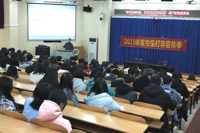 12月1日,国泰君安证券咸宁营业部业务经理刘猛一行来我校做关于“防范金融风险、打击非法证券活动”宣讲活动,会计学院2018级金融管理专业、2018级会计专业200多名学生积极参加。