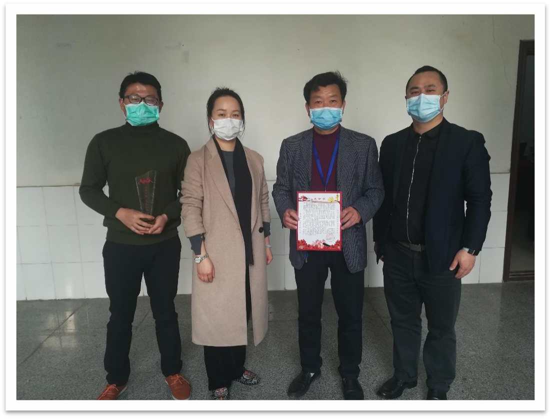 2020年4月7日,咸宁职业技术学院会计学院迎来了一群特殊的客人,他们是希望桥社区副书记陈娜、支部委员傅勇,他们专程赶来,只为了当面感谢会计学院的领导、老师们培养了一名优秀的共产党员——王渺同学。他们带来的感谢信中写道:王渺同学在新冠疫情暴发的危险时刻,在希望桥社区大楚城小区需要帮助的最困难时刻,在体现一个公民责任和担当的最闪耀时刻,他站到了防疫防控工作的最前沿,用赤诚为大楚城小区居民的生命安全铸就了一道钢铁防线。会计学院院长钟新联、副书记徐俊杰一起接受了感谢信和社区授予王渺同学的“抗疫功臣”奖杯。